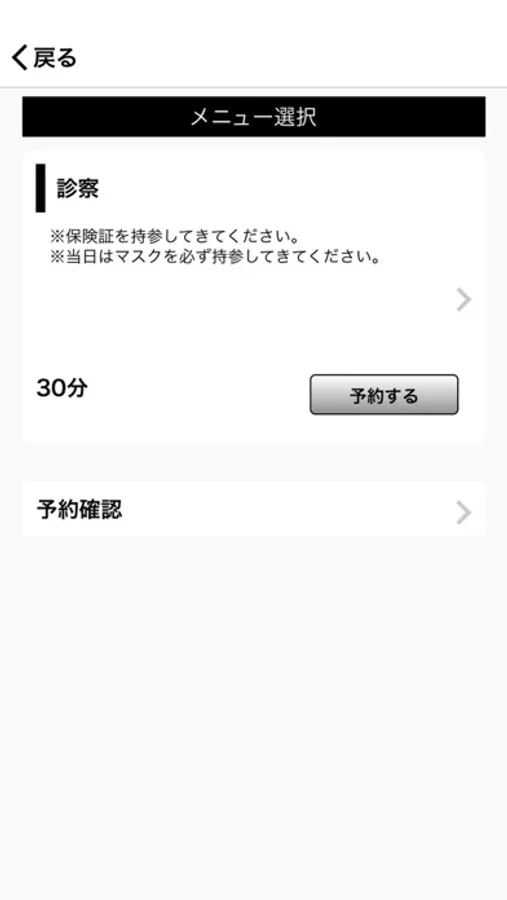 アプリから簡単web予約 / 最新情報をお届け / ボタン一つで簡単電話問合せ / 公式HPへメニュー