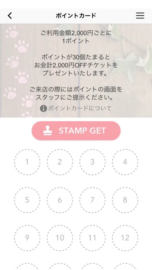 たくさん貯めていただくと次回使える特典をご用意しております。