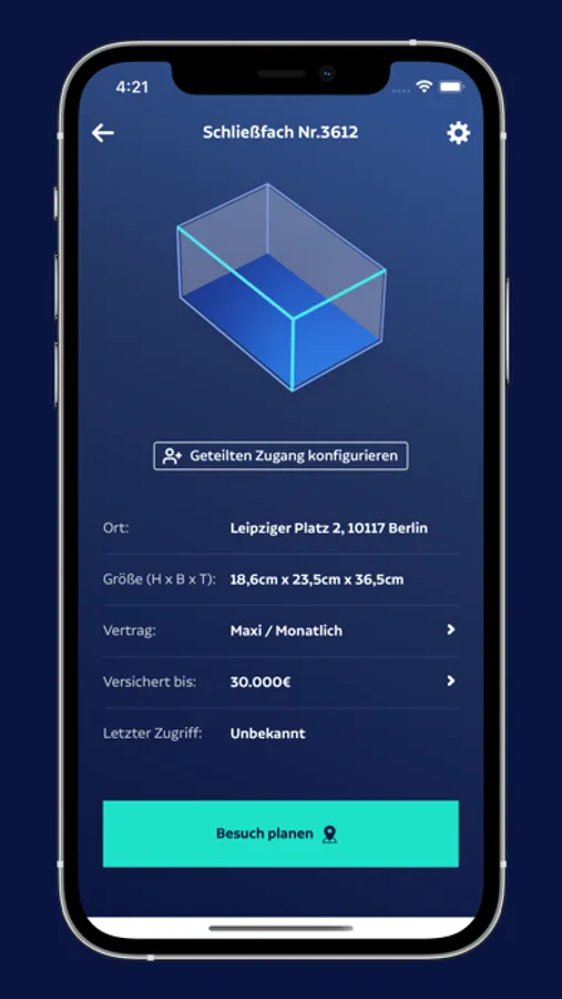 Das gute Gefühl die Sicherheit Ihrer Wertsachen immer unter Kontrolle zu haben. Mit der Asservato App behalten Sie immer den Überblick über Ihre angemieteten Wertschließfächer und können über die Stammdatenverwaltung jederzeit Ihr Zahlungsmittel ändern oder unseren Kundenservice kontaktieren.