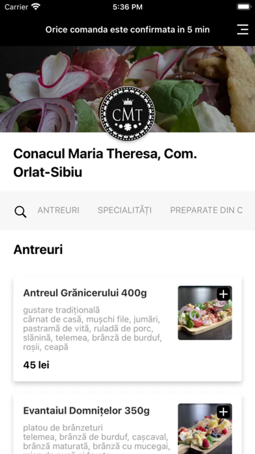 Restaurantul Maria Theresa este un loc cu poveste, ce a fost creat în cadrul Conacului. Este construit în prelungirea unor galerii subterane ce datează din anul 1730, construcție executată din cărămidă și piatră după arhitectură austriacă. Restaurantul este decorat în stil Belle Epoque cu obiecte colecționate în decurs de 15 de ani din țară și străinătate, obiecte cu istorie și povești, meșteșugite la rang de artă.