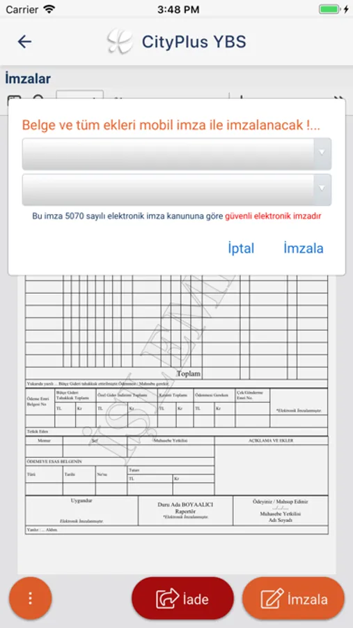 * İmza bekleyen işlerinizi görüntüleyebilir, imzalanacak belge ile ilişkili tüm içeriğe ulaşabilir, mobil imza atabilirsiniz.