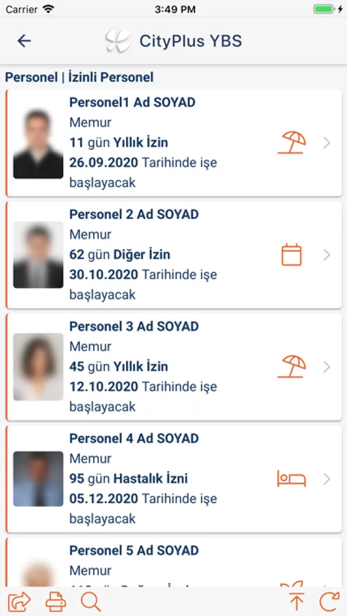 * Statülerine göre personel bilgilerini görebilir, personel arayabilir, izinli personel takibi yapabilir ve personel kartı üzerinden detayları görerek doğrudan iletişim kurabilirsiniz.
