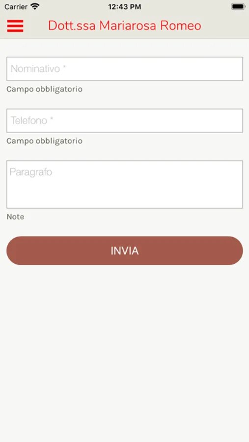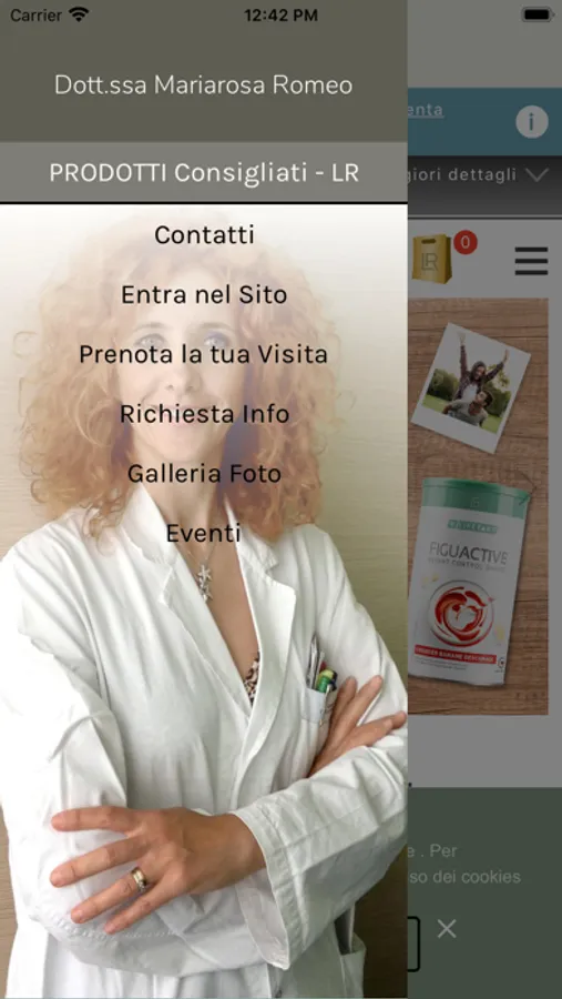 Attraverso l'App potrete contattare la Dott.ssa Romeo, prenotare visite, accedere al sito, acquistare prodotti selezionati dalla Dottoressa, accedere ad informazioni di carattere sanitario dal Ministero della Salute e dalla Regione Piemonte Sanità.