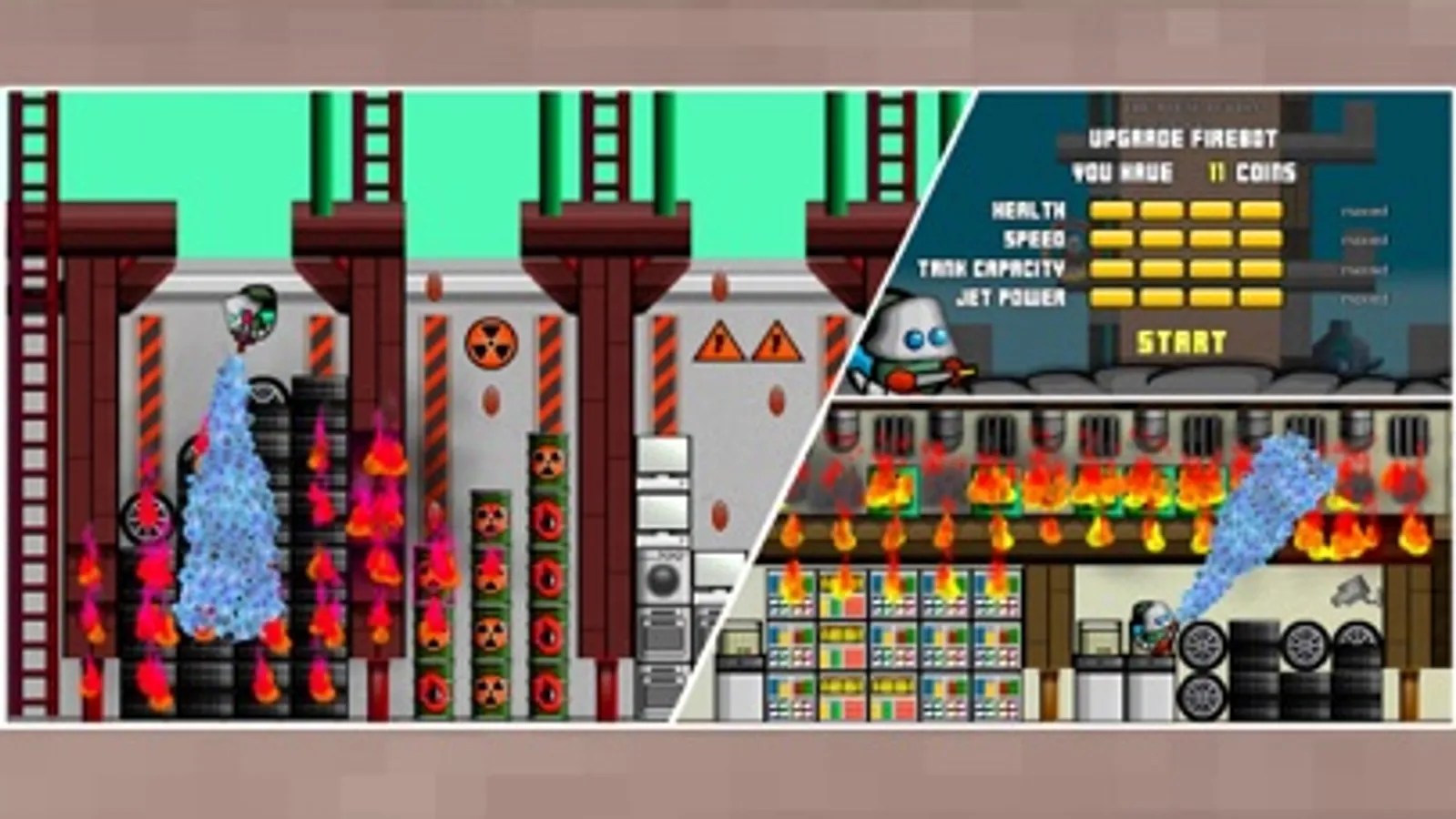 Become a brave firefighter in this addicting platformer! Fight numerous fires in different locations. Determine the location of the fire, find a way to it and extinguish it with your water cannon until everything burns out. Collect coins and upgrade your firefighter's equipment, because at each level you will have a more difficult task. Only the bravest and fastest firefighter will be able to cope with all tasks!
