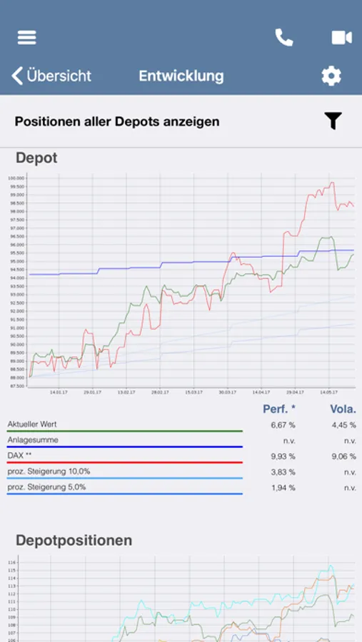 - Konsolidierte Vermögensübersicht inkl. aller Fondsanteile, Versicherungen, Beteiligungen und Bankkonten