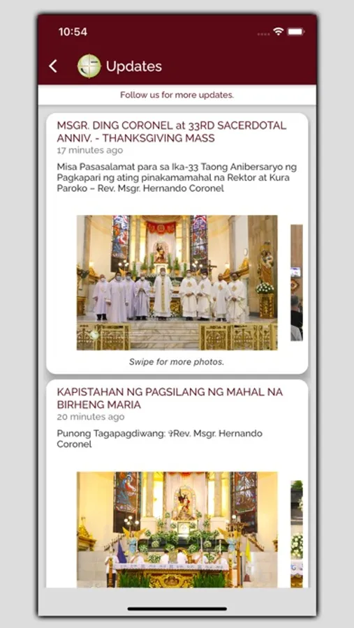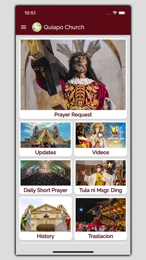 This is app will give the devotees of the Black Nazarene and St. John the Baptist the latest updates about Quiapo Church. It has a user-friendly interface which can be easily navigated by anyone with a mobile phone. When connected to internet it is automatically updated, you may browse the latest contents on updates and videos.