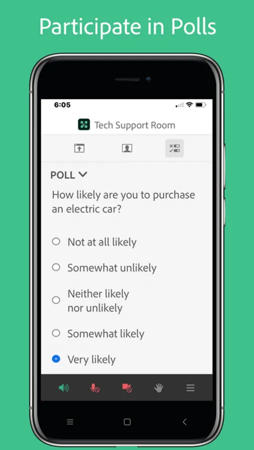 • Participate in polls, including multiple-choice, multiple-answer, and short answer