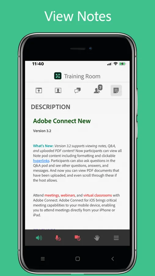 Note: This application is NOT for watching recordings. Adobe Connect recordings can be viewed using a standard mobile browser while online.