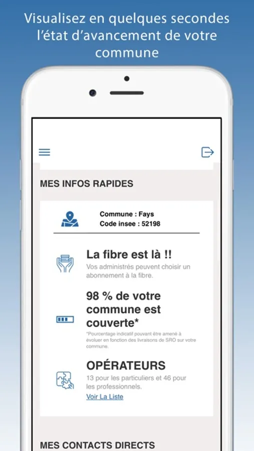L’application est publique avec des accès dédiés pour les élus des Collectivités du Grand Est concernant l’arrivée de la Fibre Optique intégrant :