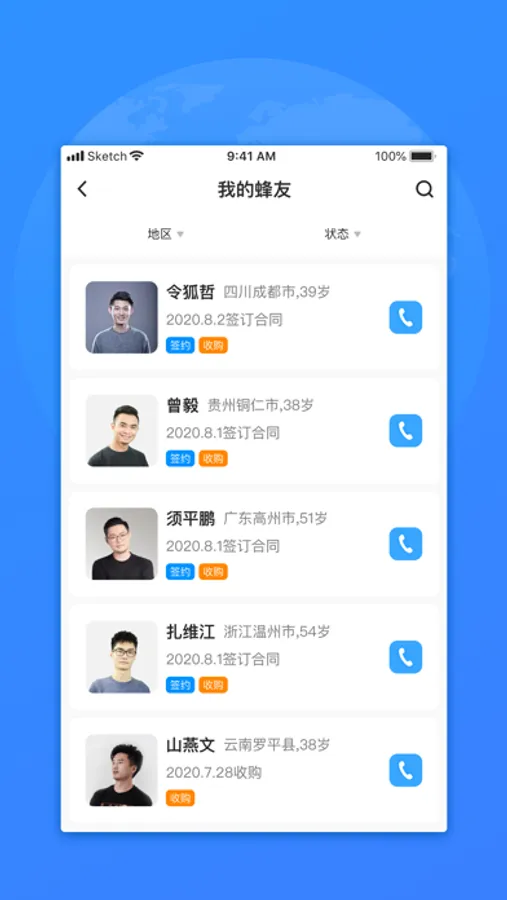 大农科技业务端能够帮助前线人员实现POI 采集、客户管理、合同查询、订单查询等功能,快速完成信息录入