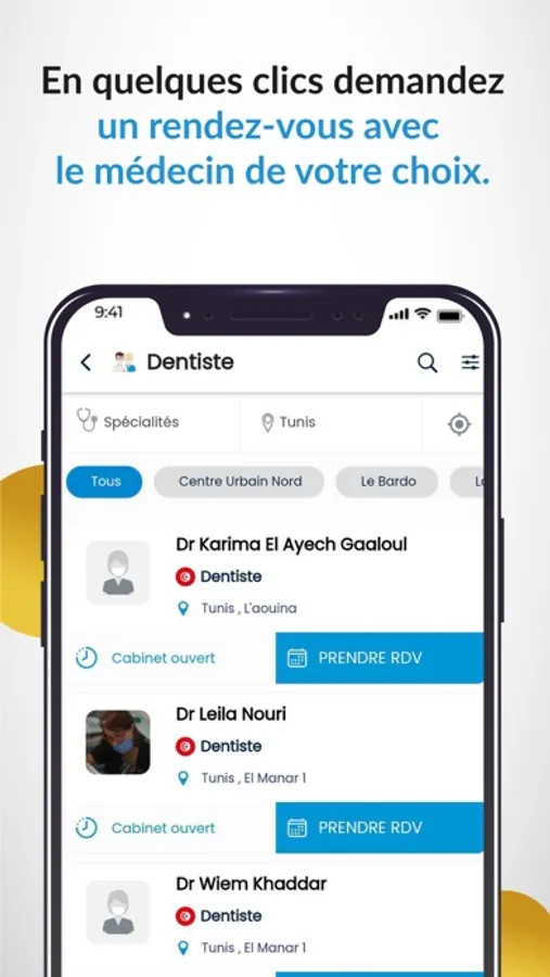 1- Annuaire médical complet: Consultez l'annuaire med.tn sur l'application et bénéficiez des fonctionnalités avancées tel que la géolocalisation et la recherche par proximité.
