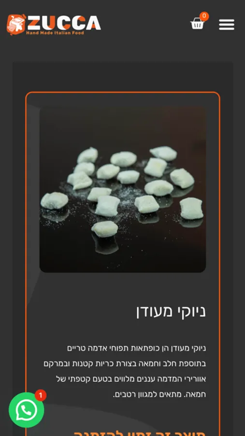 דרך אפליקציית זוקה ניתן לבצע הזמנות של חומרי גלם ישירות אליכם, ממגוון קטגוריות המוצרים שלנו: פסטות,רביולי,בצקי פיצה,טורטליני,ניוקי ועוד...
