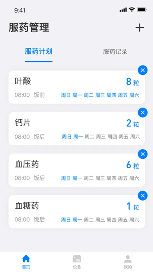 ilife+ supports P1 smart pill box devices (including ilife+ users without hardware) to manage people's medication plans. Its functions include: