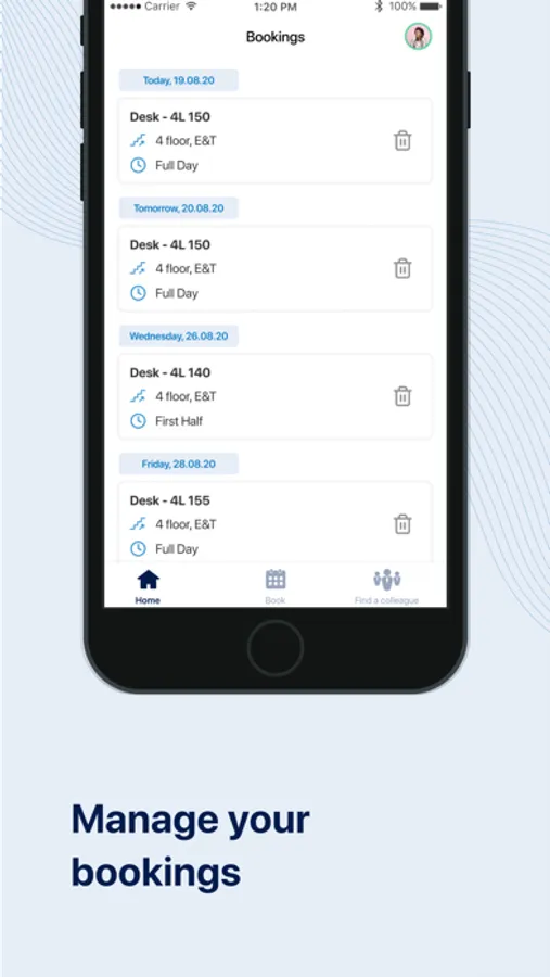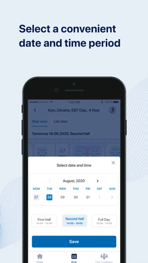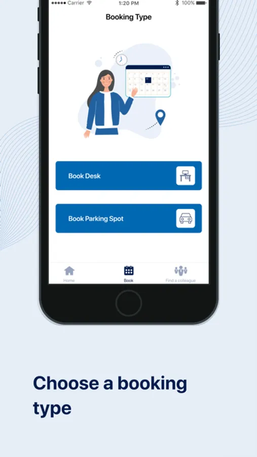 CTBooking is a simple elegant design application that allows users to instantly find an available desk in their department or a parking spot and book them.