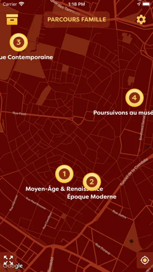 - Un parcours libre, sans prescription d’ordre, permettant à l’utilisateur de découvrir les lieux en fonction de ses envies et de ses déplacements