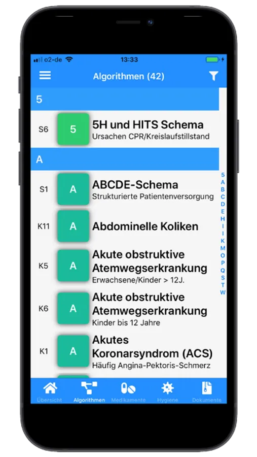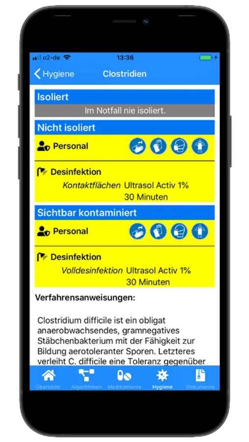 Algorithmen (SOPs), Notfallmedikamente, Hygieneplan und wichtige Dokumente digital, aktuell und offline nutzbar.