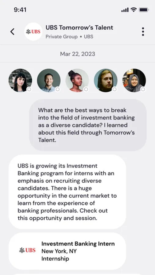 Join career interest-based groups with industry insiders who have been in your shoes. For experienced professionals with little bandwidth, this is where you can give back to the next generation of talent, share your lived experience, and maximize your impact - Lift As You Climb!