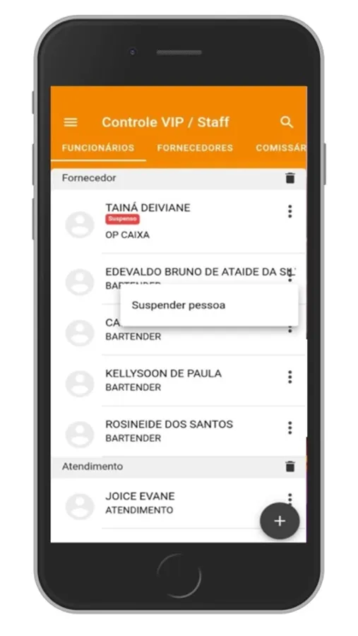 Controle de staff e funcionários, com validação por pulseiras ou credenciais, com foto no sistema e demais dados de cadastro, com controle de hora de entrada x saída, mapa de calor e relatórios.