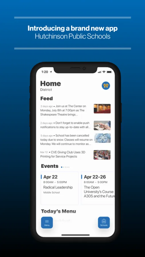 The official app for Hutchinson Public Schools allows users direct access to the most recent news, announcements, and event calendars. Customize the app to display information relevant to a specific campus and to receive important notifications from the district. Users may also access the directory of district faculty and staff, view dining menus, find the location of district events, contact campuses and departments, follow athletic scores and updates, and much more.