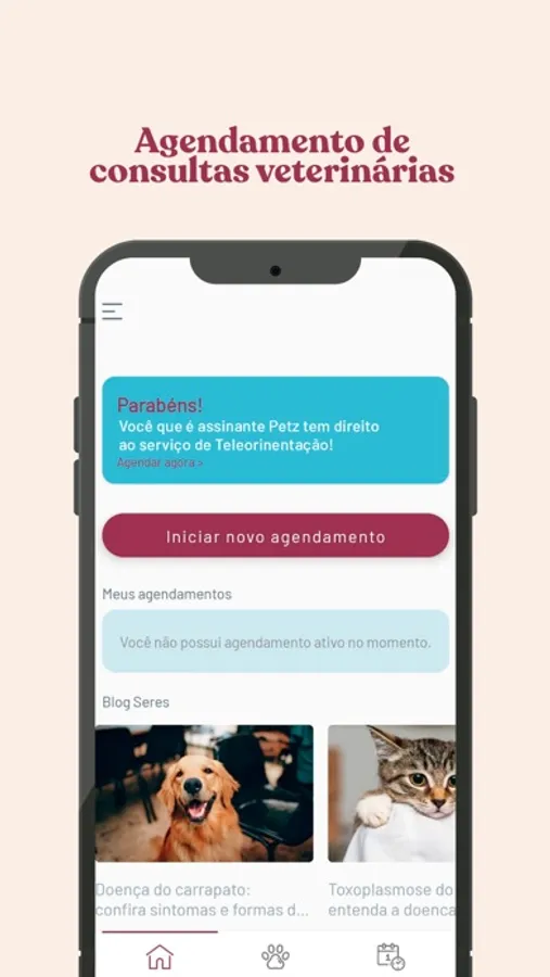 - Agendamento de consultas veterinárias com diversos especialistas do Centro Veterinário Seres;