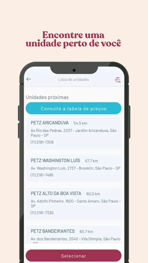 - Unidades de atendimento próximas de você.