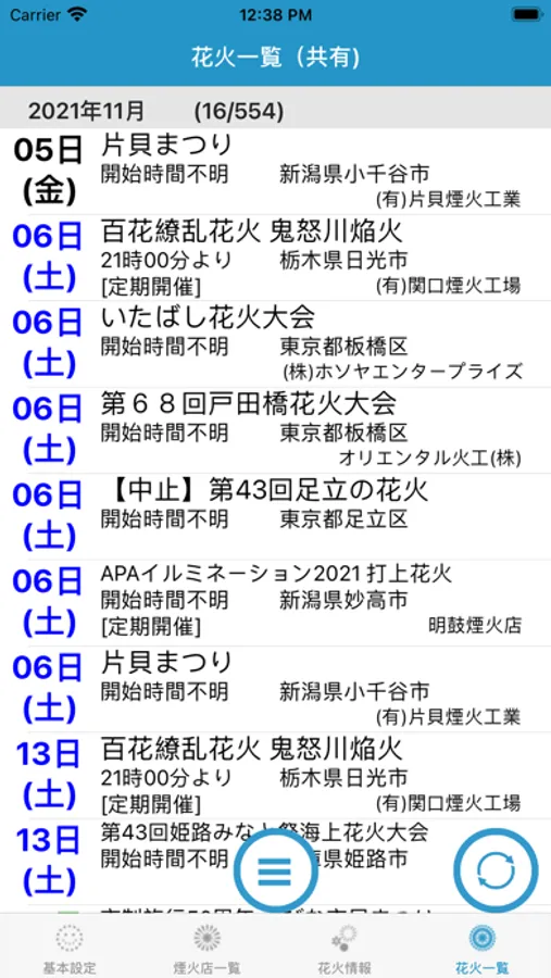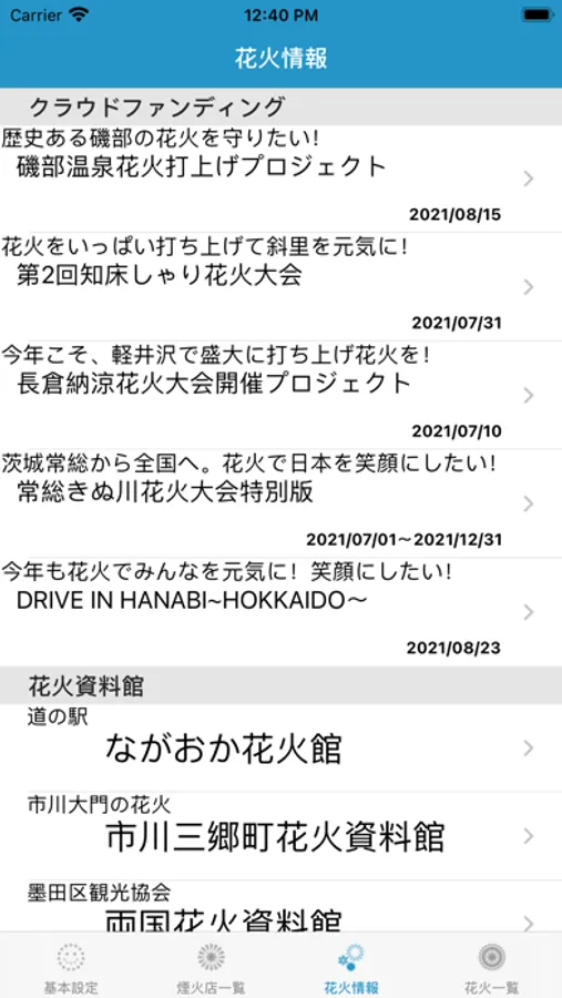 日本国内の花火(花火大会)の情報を一覧形式で表示します。ちかごろは変則的なスケジュールで開催される花火も多いため、なかなか最新の開催情報を取得するのは大変です。このアプリを参照して観覧できる花火を見つけてみてください。
