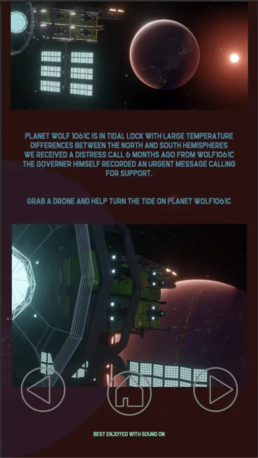 Planet Wolf 1061c is in tidal lock with large temperature differences between the north and south Hemispheres We received a distress call 6 months ago from Wolf 1061c. The Governer himself recorded an urgent message calling for support. Grab a Drone and help turn the tide on planet Wolf 1061c