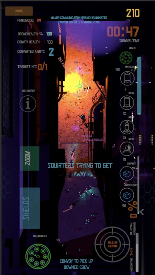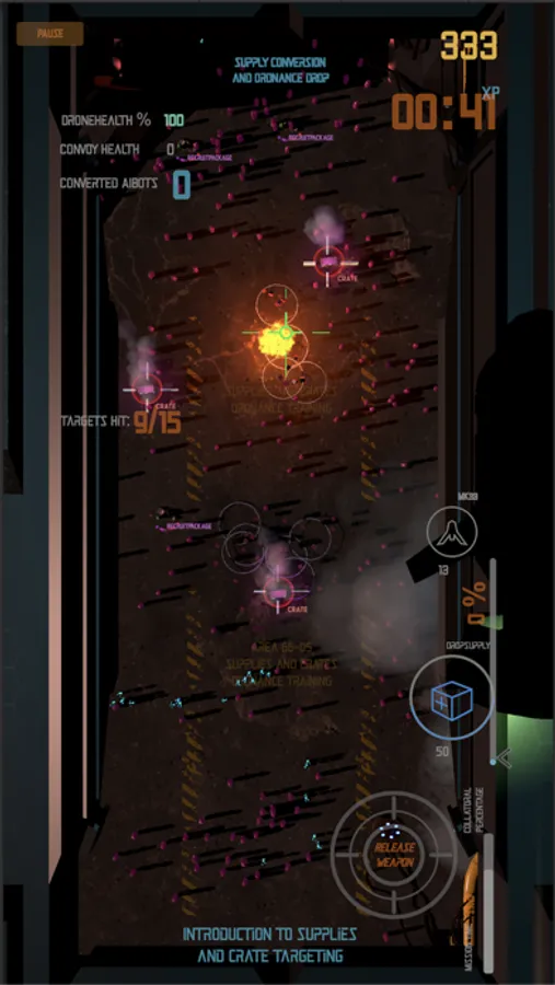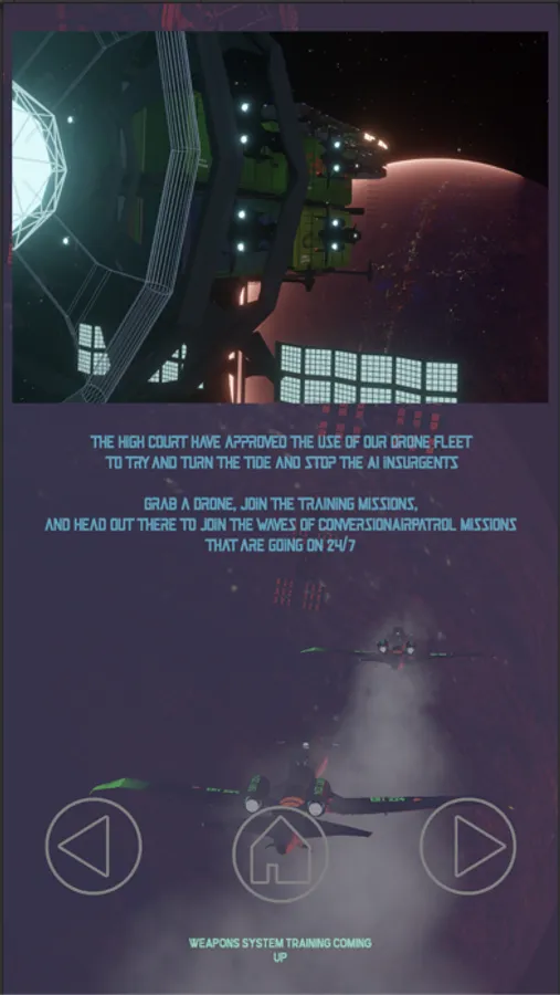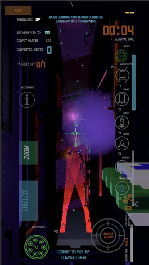 The goal is to convert the planet back to Human Biolife control and stop the AI Insurgent Coup. Use Shields to protect your Drone from incoming Air to Air Threats