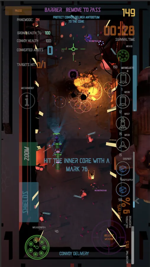 Protect the Convoys as they make it across the canyon, to deliver the Virus Antidotum and the Safe AI key to the Core of the planet.