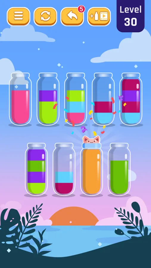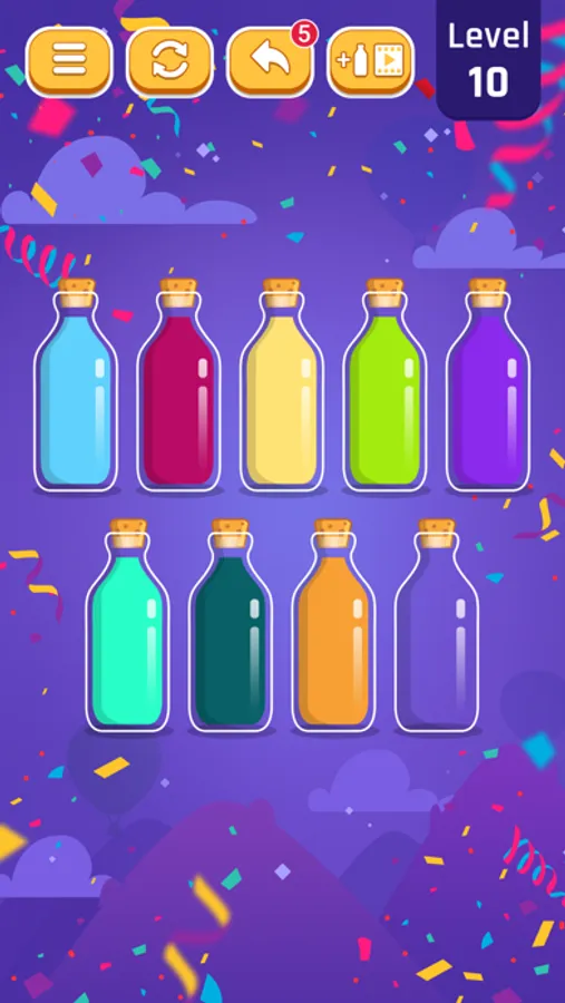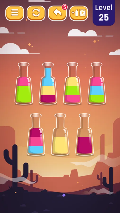Try to sort it and pour colored water in the bottles until all colors are in the same bottle. A relaxing and challenging game to train your brain