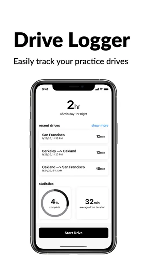 Drive Logger helps you log how much you have been driving making sure that you get your practice hours in.