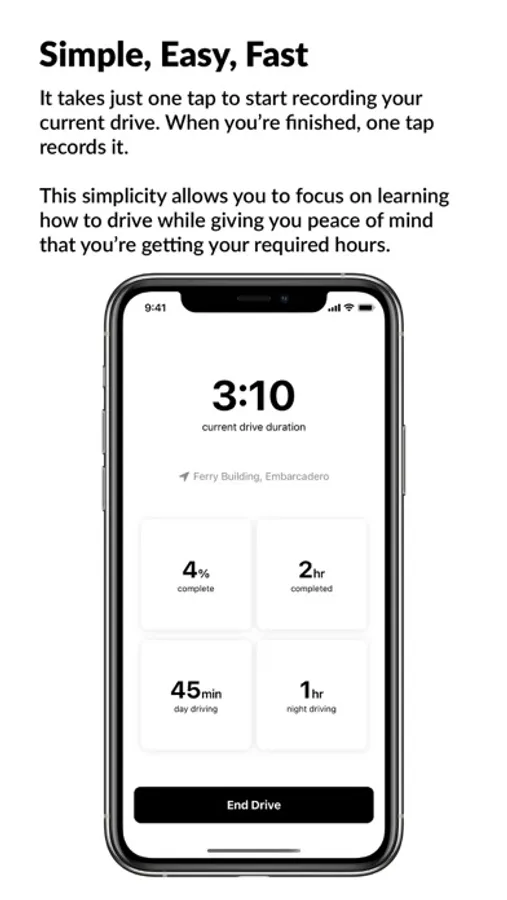 This simplicity allows you to focus on learning how to drive while giving you peace of mind that you’re getting your required hours.