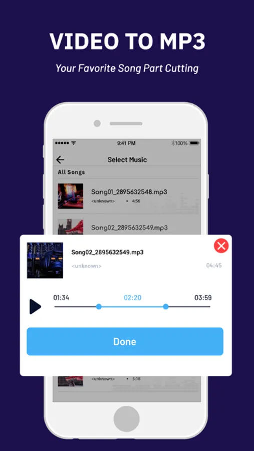 Very Faster and reliable to convert your video mp3 files very easily. With MP3 Converter app you can convert video into mp3 with HD Music clarity.