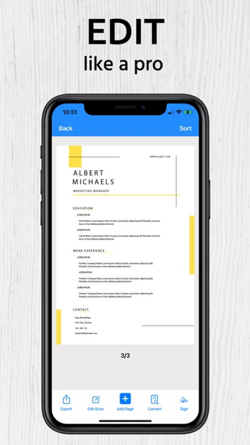 Want to edit a page you just scanned? The Scanner Me makes it possible for you. You can easily edit text, add new text, delete text and highlight anything you want on the scanned documents.