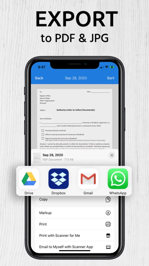 The app also allows you to share documents on any app, email, or folder. You can also choose to convert JPG to PDF or Docs and vice versa. Share documents, book pages, digital passports, tickets, receipts, IDs, syllabus pages, CVs, cover letters, resumes, and more in any format you like.