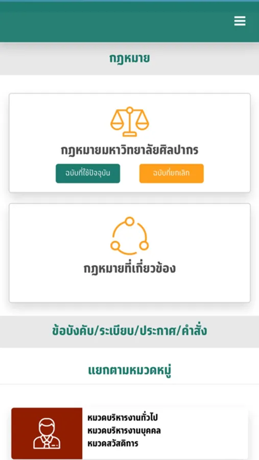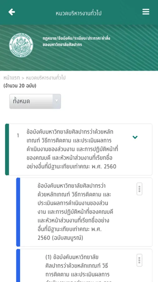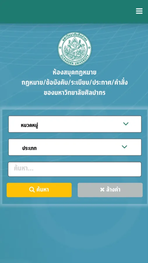 แอปพลิเคชันเพื่อการสืบค้นข้อมูล ข้อบังคับ ระเบียบ ประกาศ และคำสั่งต่างๆ สำหรับมหาวิทยาลัยศิลปากร