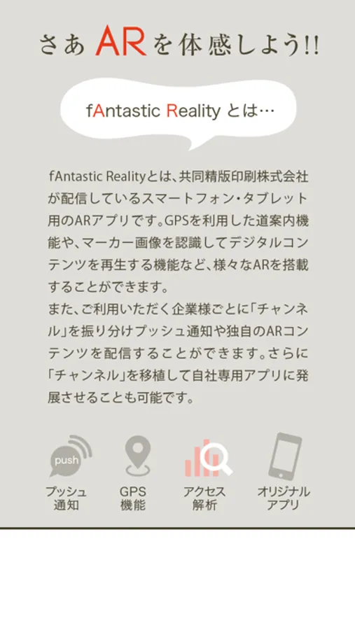 「fAntastic Reality」はカメラを通して現実の風景に様々なデジタルコンテンツを表示することが出来るアプリケーションです。