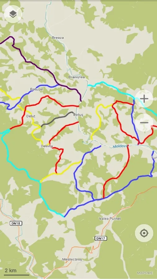 Descarcati aceasta alicatie si veti putea gasi 17 trasee montane pentru drumetii, ciclism sau moto cu o lungime totala de peste 100 de Km. Hartile traseelor pot fi descarcate pe telefon sau tableta si pot fi utilizate pentru navigare offline. Tot in aceasta aplicatie gasiti informatii si imagini despre, cultura, arhitectura dar si frumusetile naturii din aceasta zona a Bucovinei.