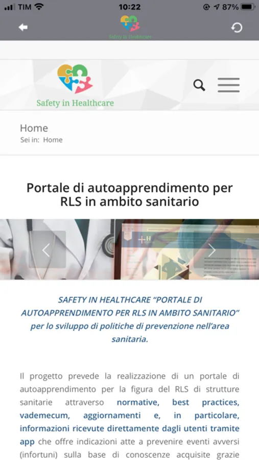 Safety in Healthcare è un portale di autoapprendimento per la figura del RLS di strutture sanitarie attraverso normative, best practices, vademecum, aggiornamenti e, in particolare, informazioni ricevute direttamente dagli utenti tramite app, che offre indicazioni atte a prevenire eventi avversi (infortuni) sulla base di conoscenze acquisite grazie all’analisi dei dati.Il progetto vuole erogare un servizio innovativo basato sulla condivisione e messa a disposizione del RLS di tecnologie che gli consentiranno di avere conoscenze dei fattori di rischio presenti nello specifico settore e di apprendere tutte le misure di prevenzione e protezione adottate.In questo modo l’RLS avrà l’opportunità di confrontarsi sulle problematiche con una platea che condivide competenze omogenee. Ogni RLS è la ricchezza del portale, grazie alle sue competenze ed esperienze. La figura del RLS ha un ruolo decisivo per il benessere collettivo dell’azienda ma a causa della poca esperienza e spesso l’utilizzo di strumenti non completamente corretti, non sempre può adempiere ai suoi compiti come protagonista.