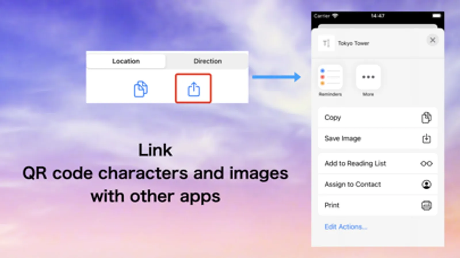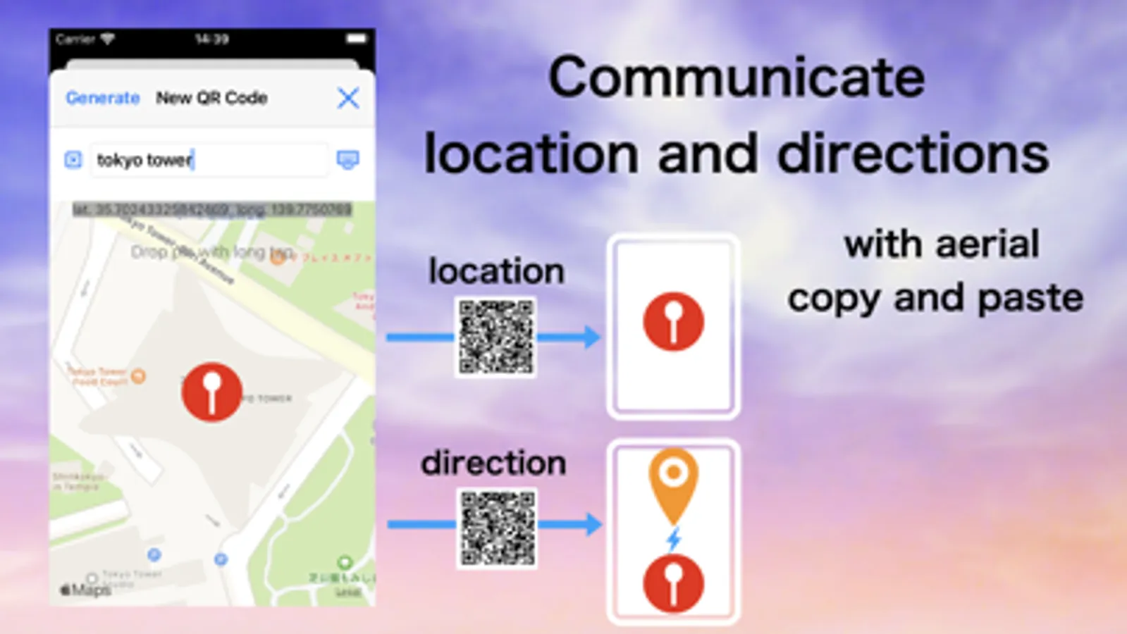 - Generate QR codes for scanning texts, locations, directions, uniq ID, etc.
