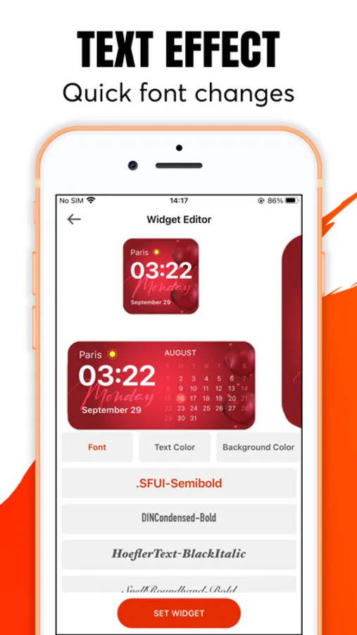 With Widgets Editor, you can freely edit the widgets font, theme color, or even the background color.