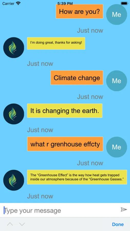 Mona: Climate Change Advocate is a bot that informs you about Climate Change. You can ask her a question, and she will answer back with the closest response.
