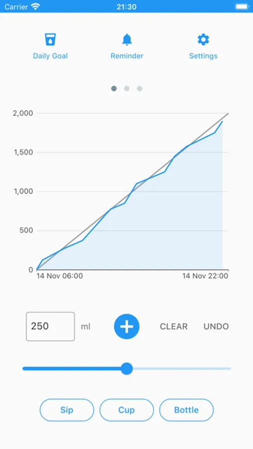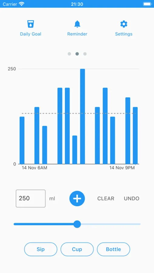 • Logging and tracking water intakes in one screen