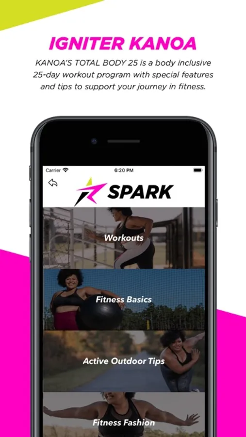 Ignitor KANOA is Top Body Positive Influencer. Her 25-day program TOTAL BODY 25 is an upbeat fitness program to help you gain strength, agility, and endurance with CARDIO, RESISTANCE, WARM-UP, COOL DOWN, and TRACKING. All workouts are only 20-minutes and equipment are not required.