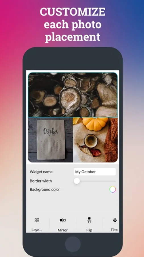 Personalize your home screen. Wide collection of tools to create and tune in photo widgets.