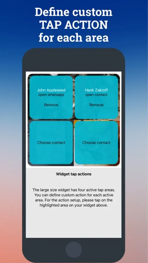 Each widget allows defining custom tap action like open the contact detail or direct Whatsapp message.