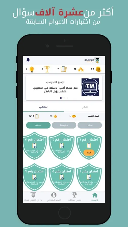 درع التفوق قدرات هو منصة تعليمية نهدف من خلالها إلى جعل التدريب على اختبار القدرات في المملكة العربية السعودية أمر سهل وبسيط من خلال التدرب على اسئلة الأعوام السابقة بشكل قريب من الاختبار بحيث يمكنك معرفة اجاباتك الخاطئة فور الانتهاء من الحل مع معرفة طريقة الحل أيضا.