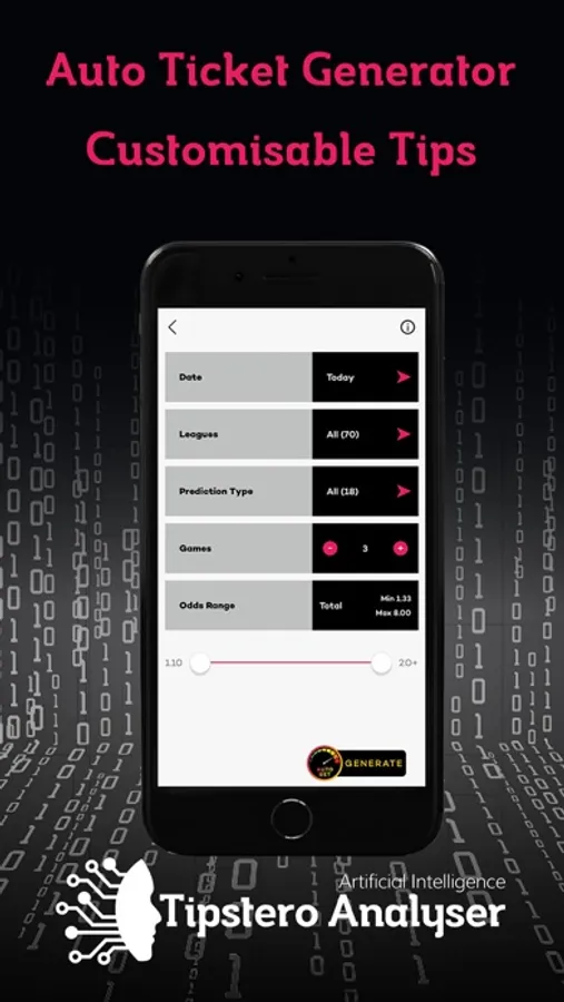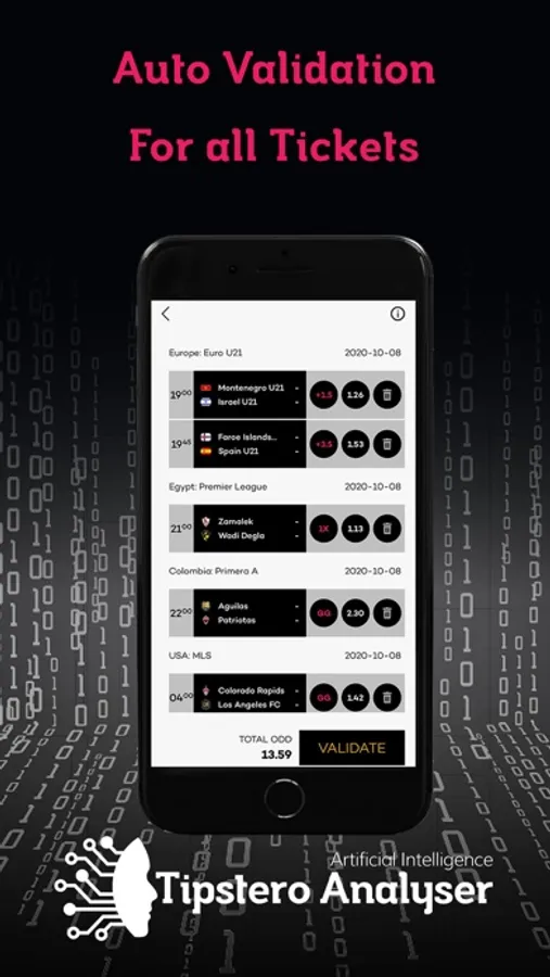 • Auto Bet (Ticket Generator) - The ultimate auto ticket creator that allows you to generate virtual bets with a high probability. Fully customizable, all the selections will take into consideration your defined criteria like date, leagues prediction type, odds interval, number of matches