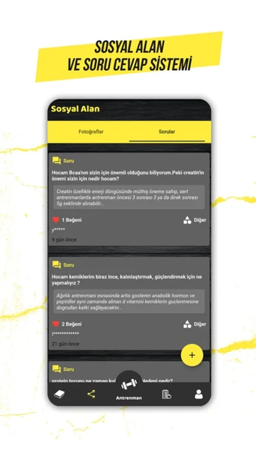 Sosyal alan sayesinde üyeler sorularını sorabilmekte ve fotoğraf paylaşımları yapabilmektedir...
