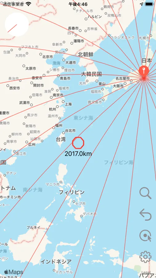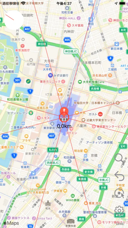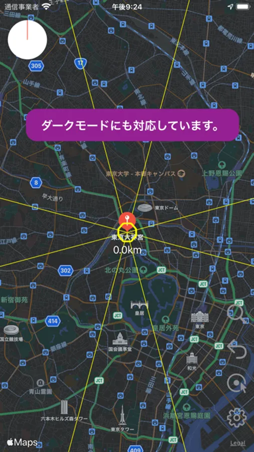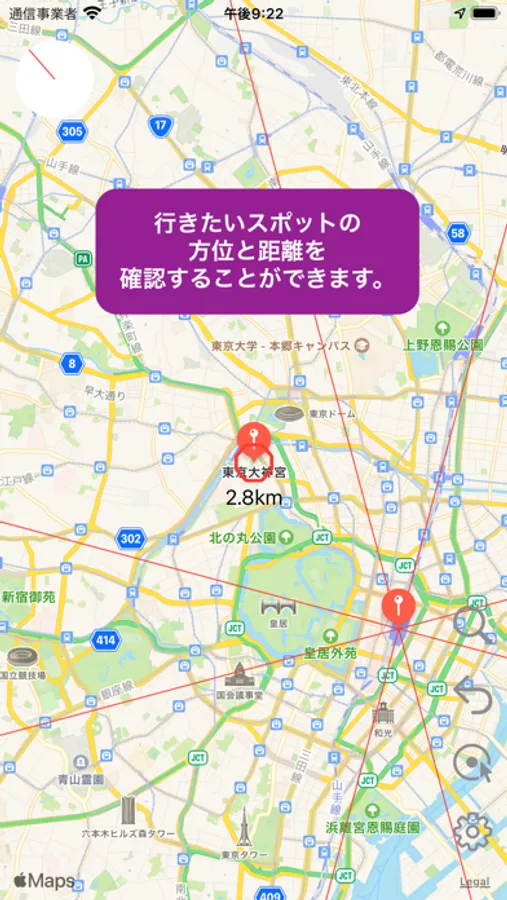 行きたい場所、気になるスポットが、どの方位にあるのか?どれだけの距離があるのか?を知ることができます。